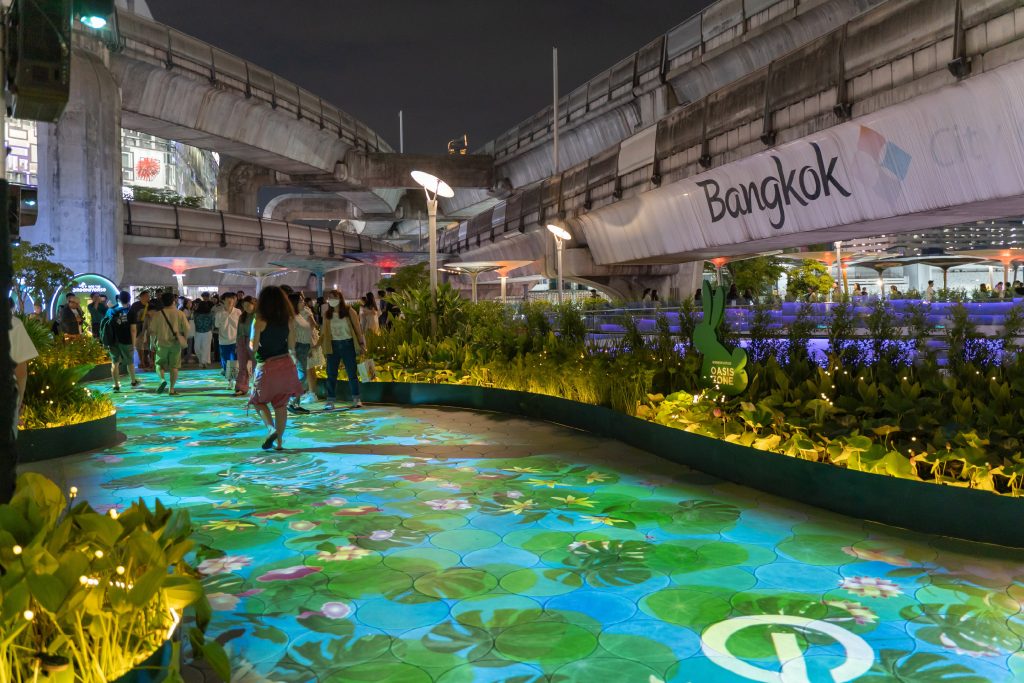 At night, Hop-Park’s lighting shines through, ensuring safety for pedestrians. Meanwhile, “projection mapping” adds more fun and color to the space, turning it into an ideal leisure environment for Bangkok residents.