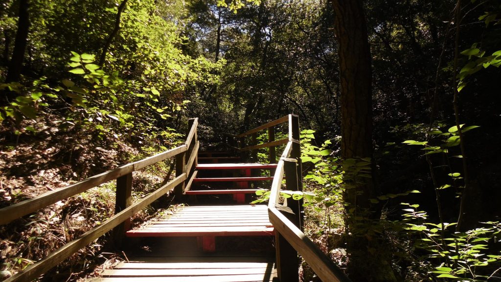 After walking for a few minutes, the path forked in several directions; however, the one I chose to continue gave me the surprise of becoming a path intervened by means of a wooden walkway in its natural finish that went into the middle of the forest and made the journey more comfortable, in some sections with steps highlighted in red, and in other sections in a continuous and level way.