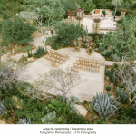 La partida arquitectónico-paisajística surge de un programa para lograr dos espacios al aire libre: el “Jardín Místico” y el “Jardín Holístico”, para tener eventos con un máximo de 150 invitados, y el Huerto de Carlota que se preparó para eventos de hasta 1300 invitados. Los jardines se articulan con un espacio circular solemne/ecuménico, enmarcado con grandes piedras que funciona como un nodo distribuidor que además se utiliza para ceremonias de matrimonio.