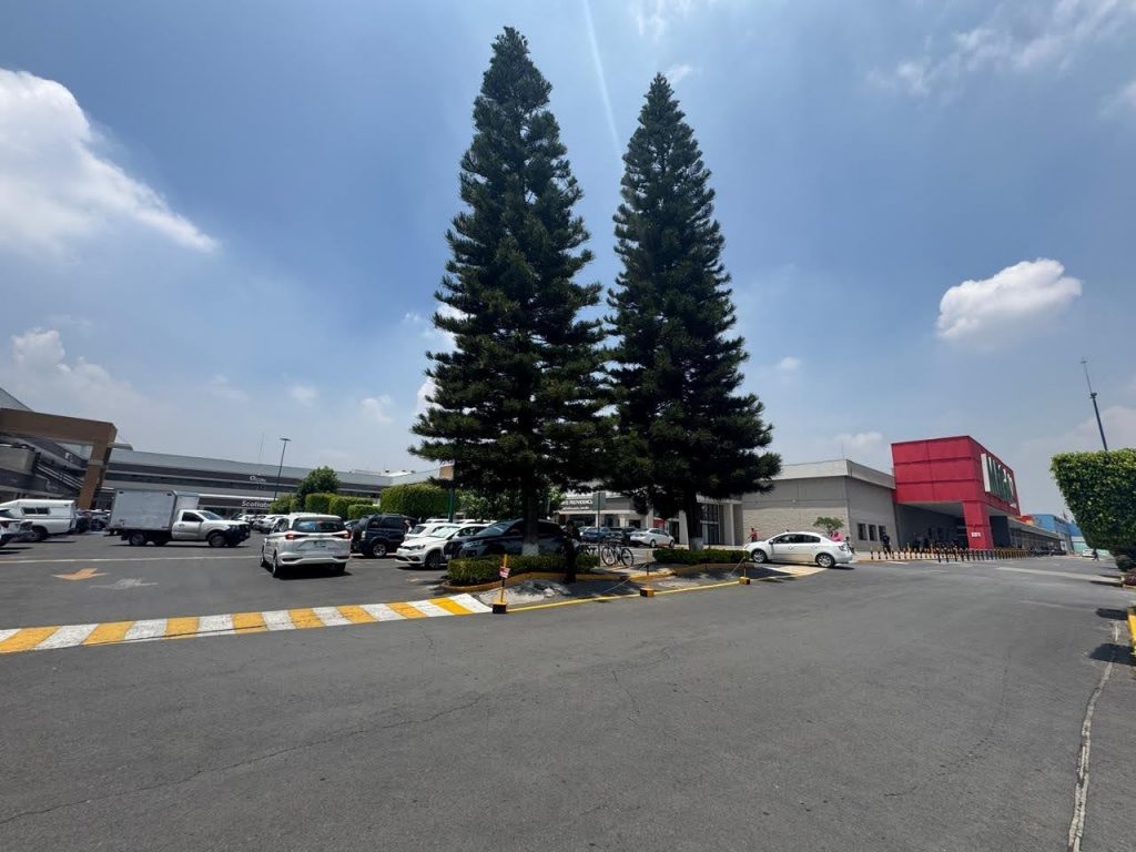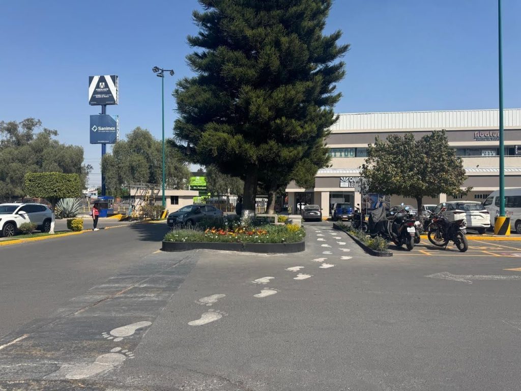 En el Centro Comercial Mega Izcalli, el camellón central presentaba desniveles provocados por el crecimiento natural de las raíces de las araucarias (araucaria columnaris) existentes. Esta condición comprometía la continuidad y seguridad del tránsito peatonal.