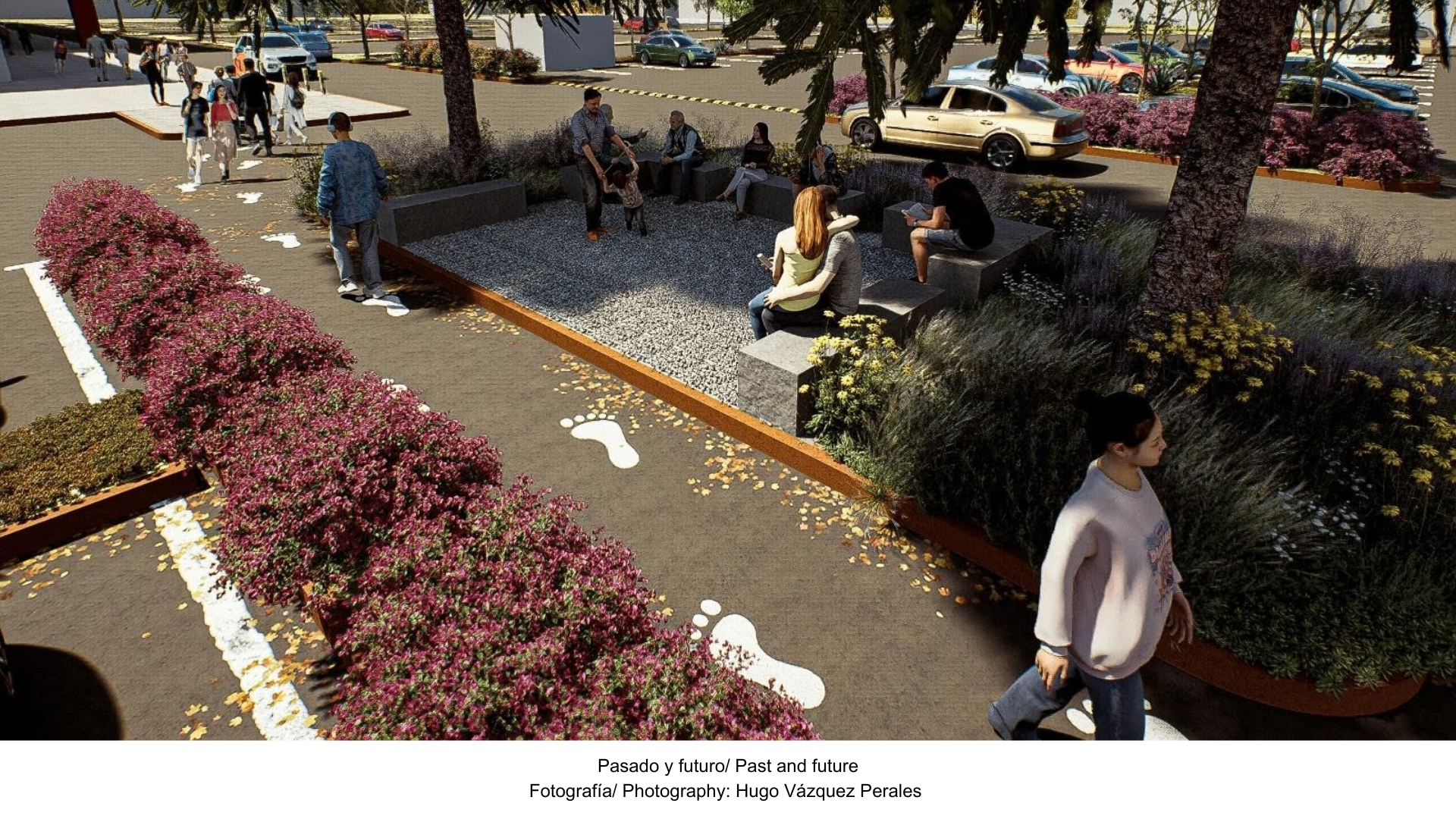 La intervención demuestra que incluso en entornos comerciales dominados por el automóvil, es posible crear pequeños oasis urbanos: lugares donde la movilidad y la estancia coexisten, donde el concreto convive con la sombra y donde el peatón recupera su protagonismo.